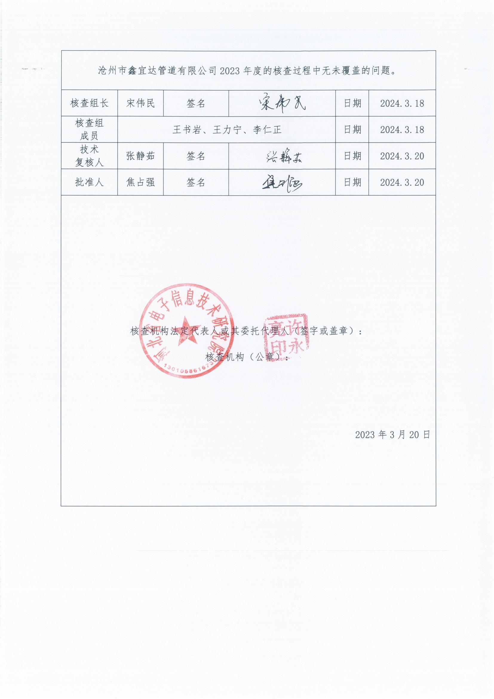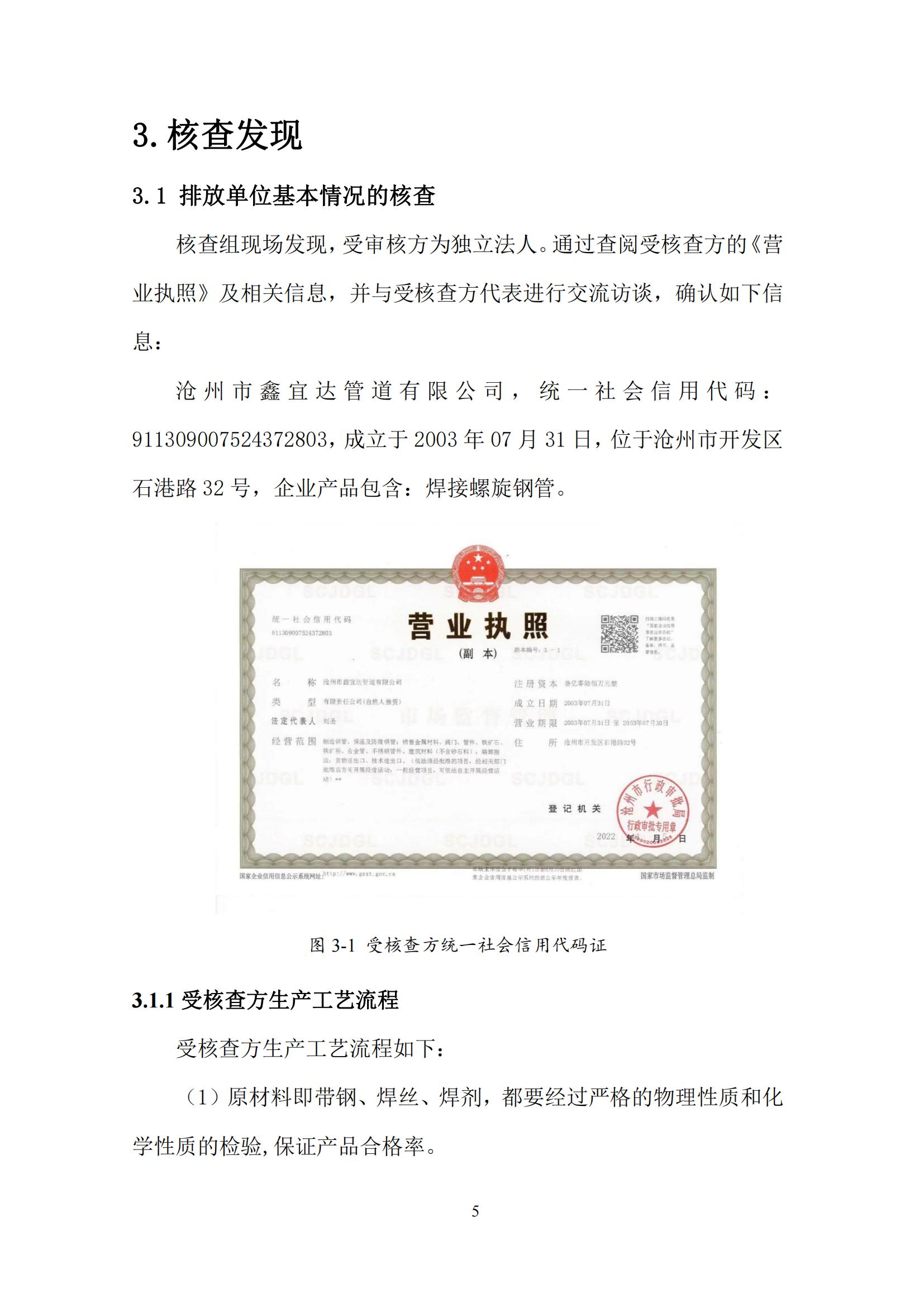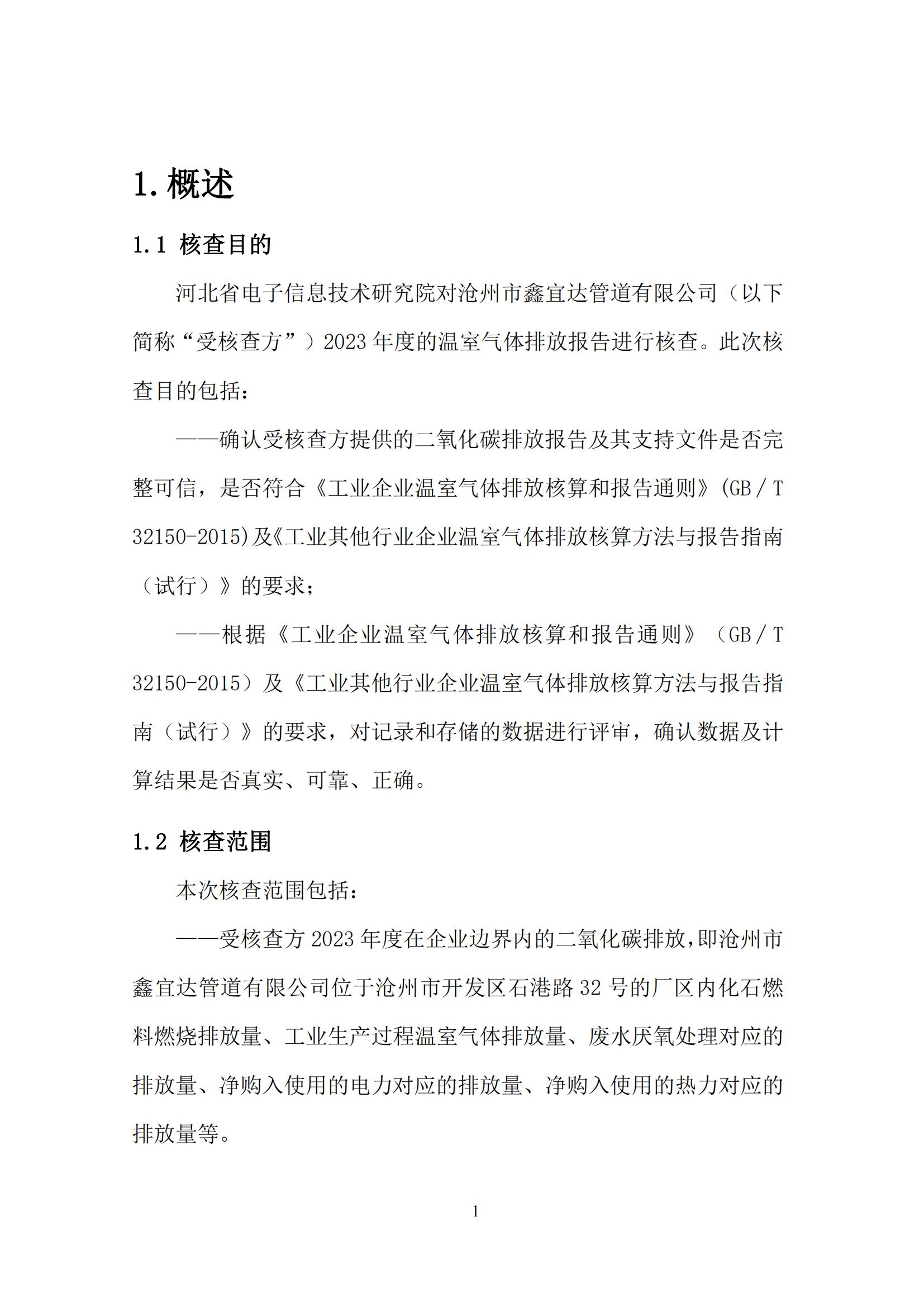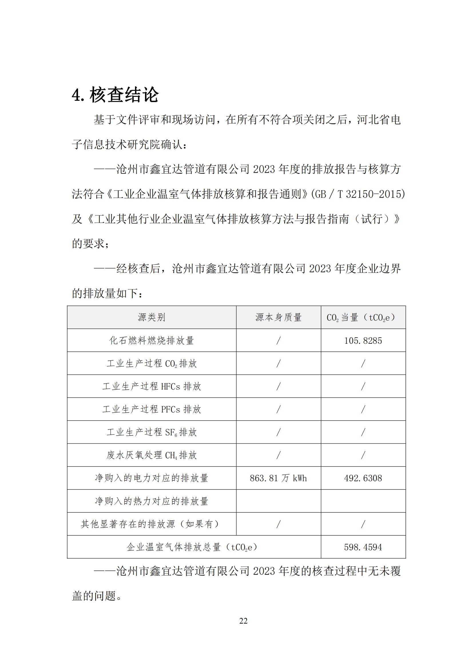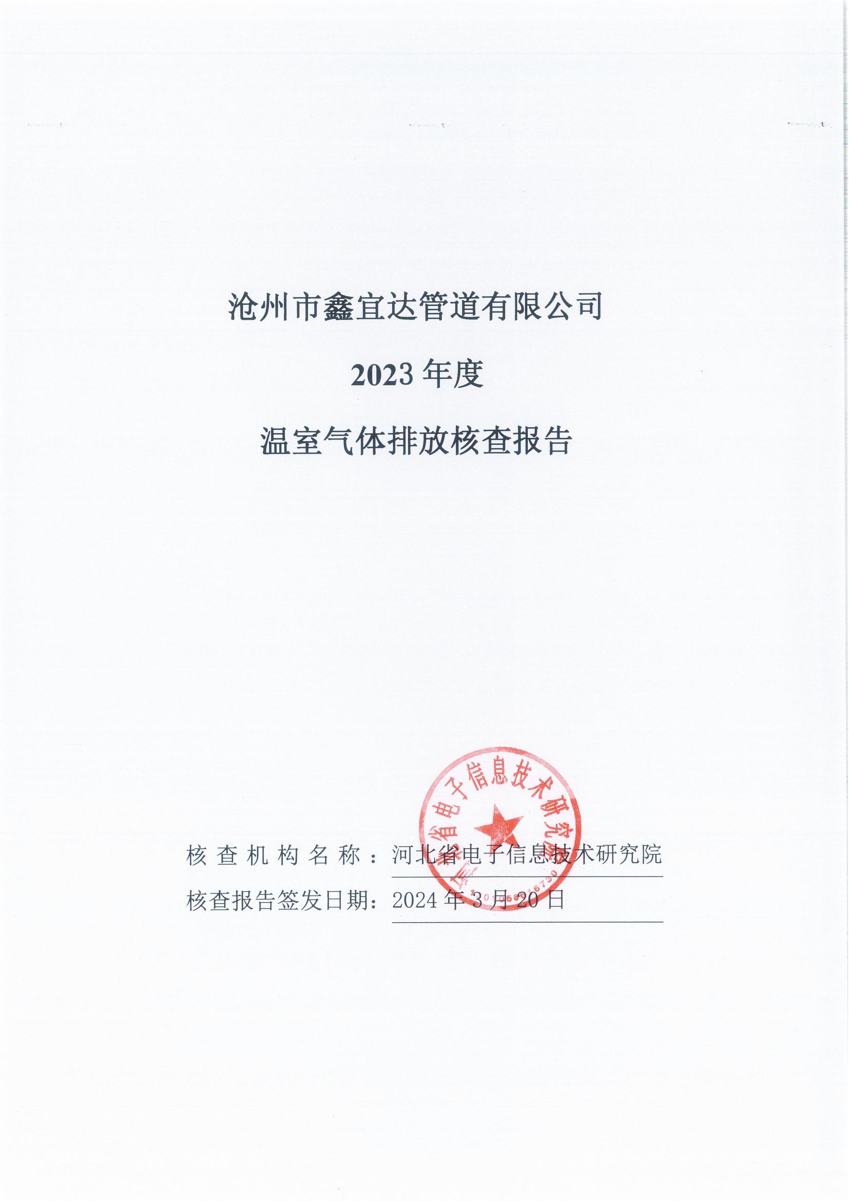 滄州市鑫宜達(dá)管道有限公司2023年度溫室氣體排放核查報告
