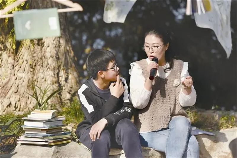 陈木兰与喜爱阅读的孩子们开展户外活动。湖北省文明办供图