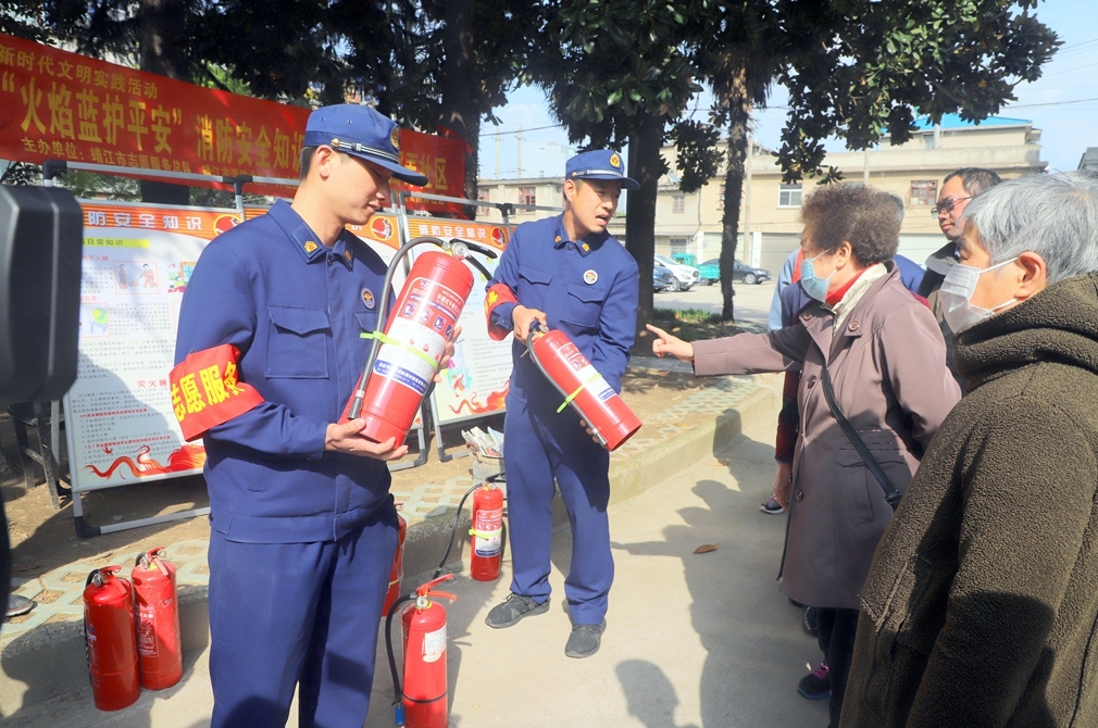 日前,江苏省靖江市消防救援大队“火焰蓝”志愿服务队的志愿者来到靖城街道公园弄社区,开展新时代文明实践首期“火焰蓝护平安”消防安全知识讲座活动,进一步普及消防安全知识,提高辖区居民群众的消防意识和自防自救能力。