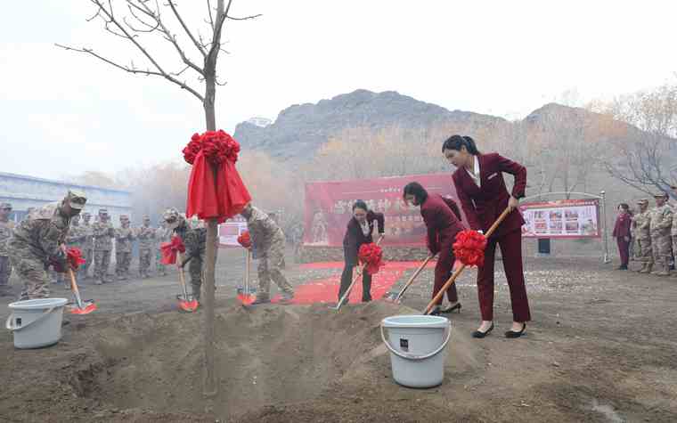 在雷锋广场奠基仪式中,湖南雷锋纪念馆雷锋精神宣讲团代表与部队官兵共同种植“雷锋树”。
