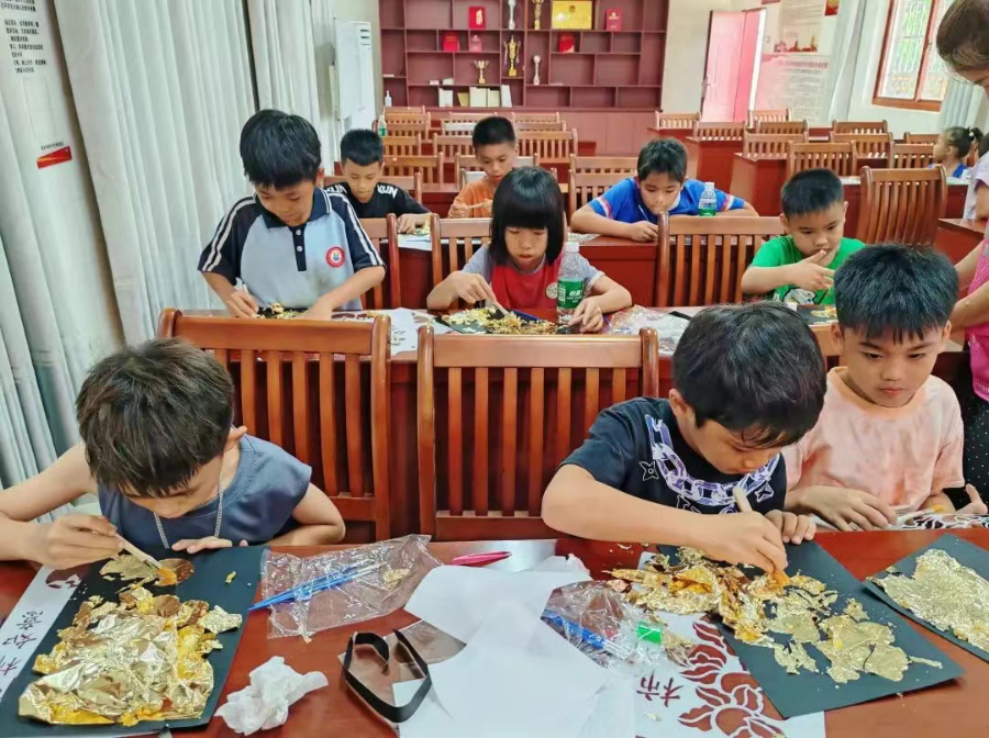 在三亚雅安村开展的“以箔为墨,烁金流光”非遗手工体验活动,以趣味游戏为引、知识课堂为基、实践操作为桥,引领青少年踏入锡箔画这一古老艺术的奇妙世界,领略其烁金流光的艺术之美。
