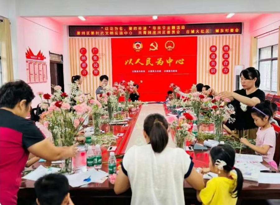 三亚市崖州区新时代文明实践中心联合共青团崖州区委员会、古城大社区、城东村委会在城东村委会开展“以花为名,爱的传递”主题活动。“母亲的爱,如高山流水,源源不断……”“妈妈哄我午睡时,自己先睡着了,睡得那么香甜……”在活动现场,孩子们用他们稚嫩而清澈的声音朗诵了两首歌颂母爱的诗歌,每一句话都充满了对母亲的敬意和感激。