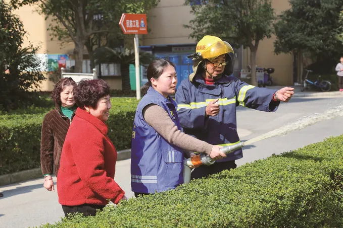 缪梅清在社区做消防科普。